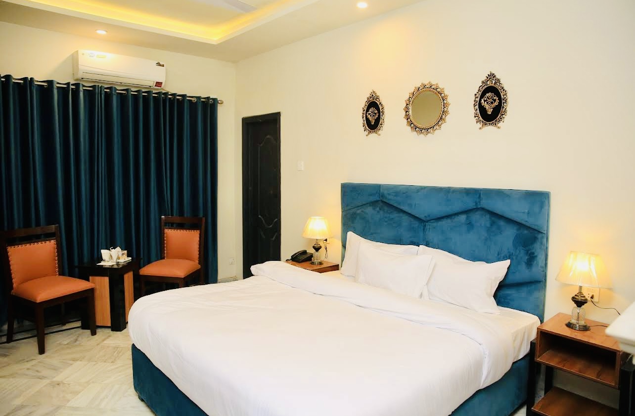 Our well-furnished, spacious, and fully air-conditioned rooms are designed to offer maximum comfort and privacy. Guests enjoy 24/7 room service, high-speed WiFi, hot & cold water, backup power, doctor on call, airport pick & drop, and secure parking, making Rio Inn an ideal family guest house in Islamabad as well as a perfect stay for professionals.